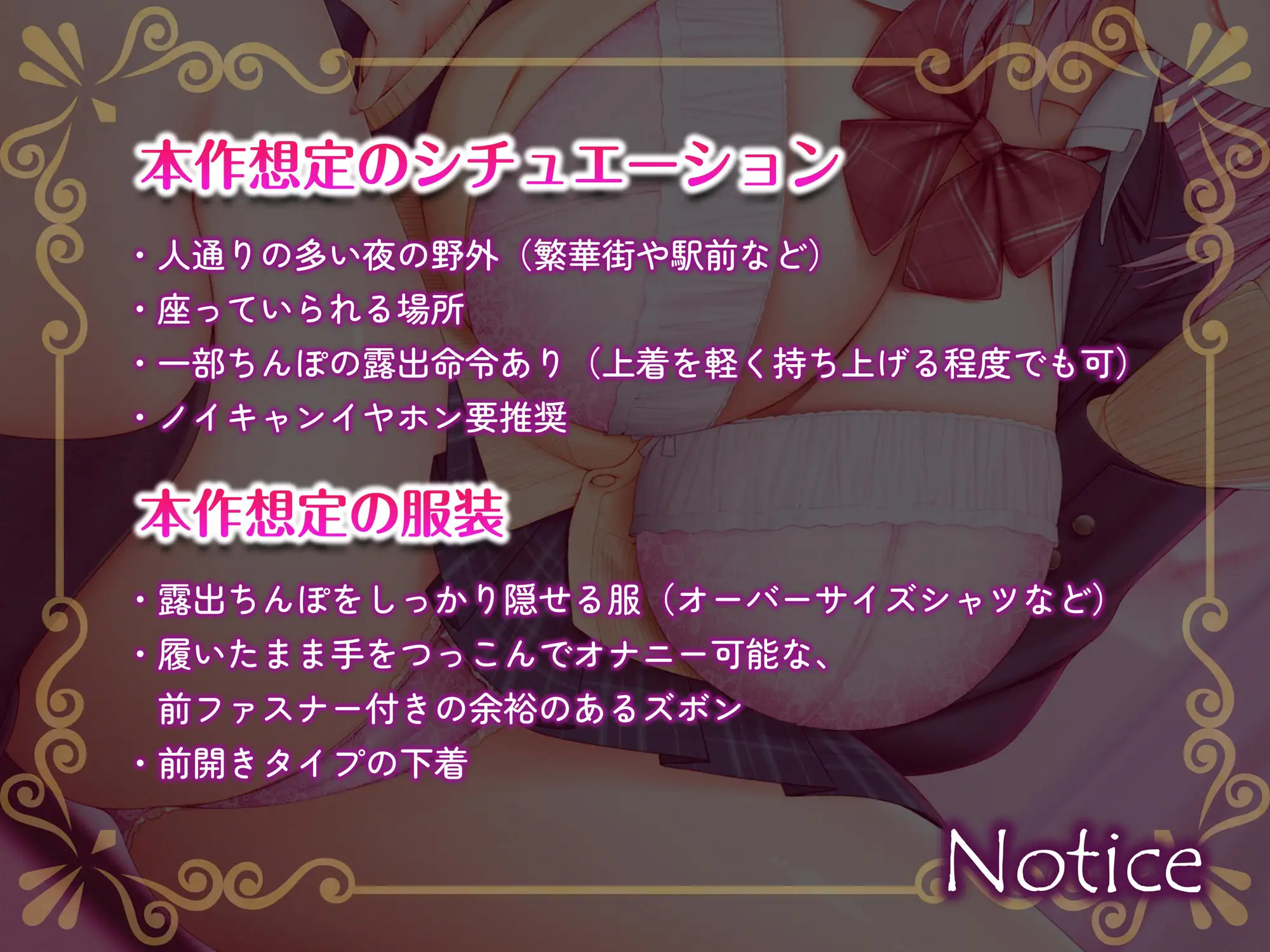 【RJ01464221】誰でもできる“脱がない”野外オナニー調教音声 オナニー指示 2025.09.22 マゾ度: 責め方 手コキ シチュエーション・プレイ 遠隔指示 オナニー指示 逆転なし 公開プレイ 言葉責め 射精煽り 射精管理 羞恥プレイ 女性上位 調教プレイ 恥ずかしい行為強要 恥ずかしい言葉を復唱命令 マゾ煽り 目隠しプレイ 露出プレイ 作品情報 タイトル 誰でもできる“脱がない”野外オナニー調教音声 サークル うさねまい 声優 恋鈴桃歌 ジャンル 逆転無し バイノーラル/ダミヘ ASMR オナニー オナサポ 露出 言葉責め 男性受け 発売日 2025年9月12日